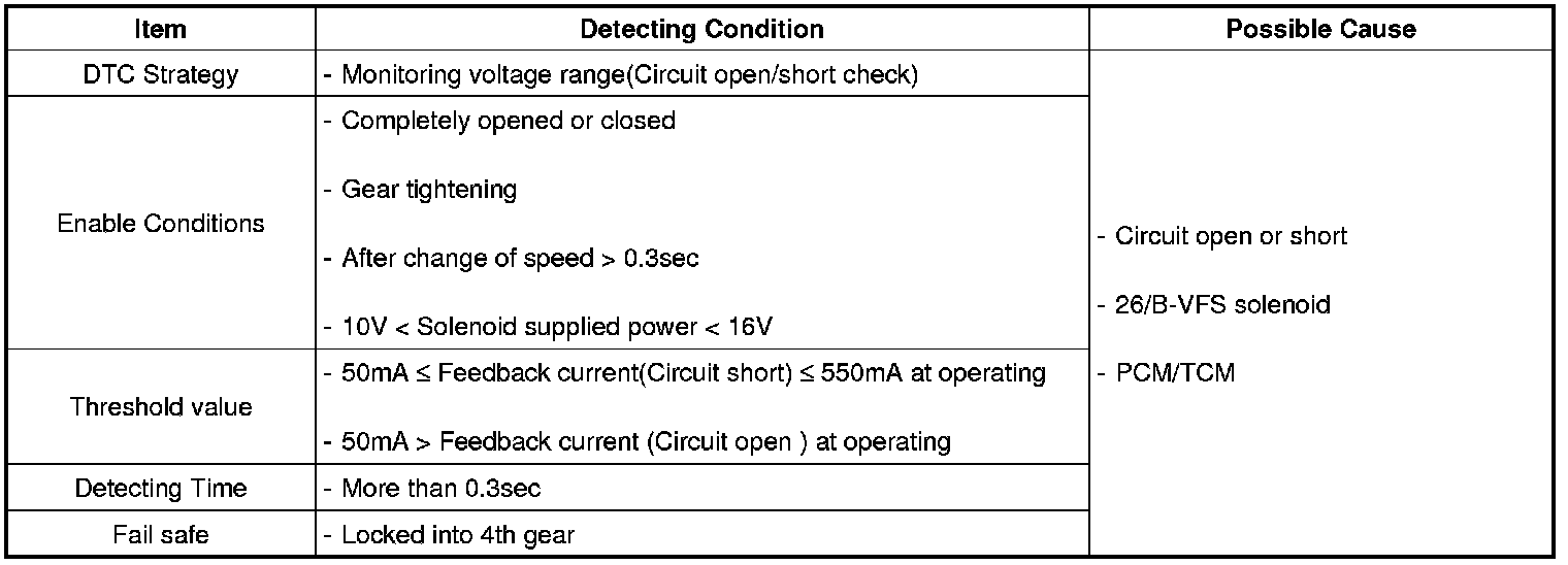 PCM/TCM control 26/B-VFS solenoid valve by changed current for reducing 26 brake shock. And PCM/TCM charge pressure for reducing shift shock at 1st speed to 2nd speed by pre-Fill control.
