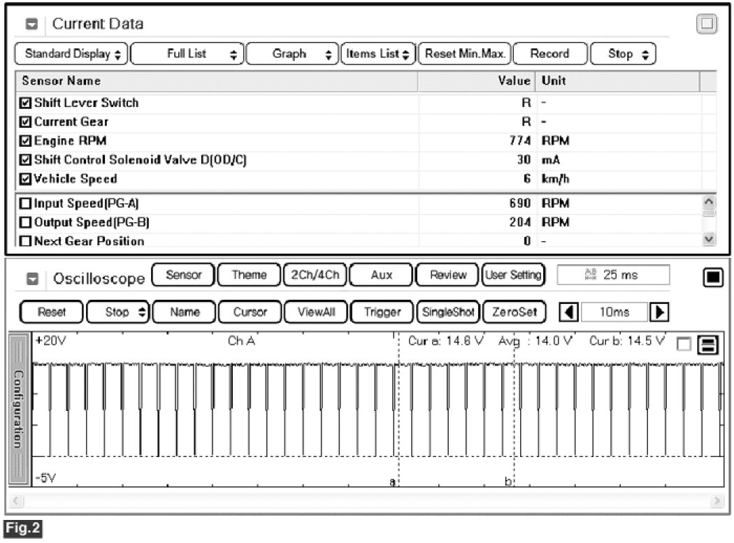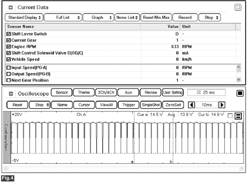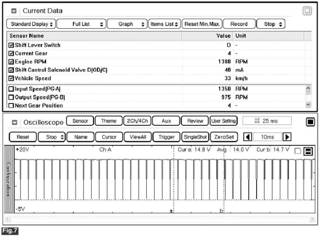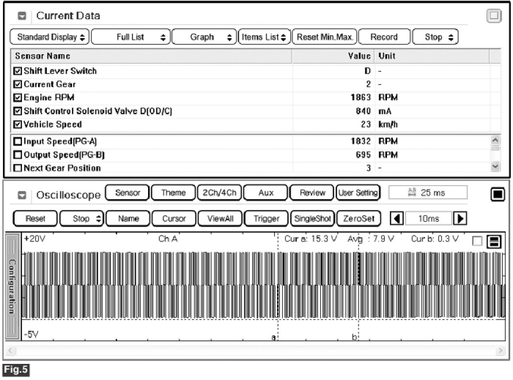 4. Select "Current Data" mode and monitor "Shift Control Solenoid Valve (OD/C-VFS)" parameter current value.