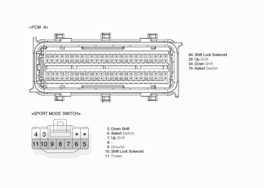 2. Disconnected "Sports mode switch" connector and "PCM/TCM" connector.