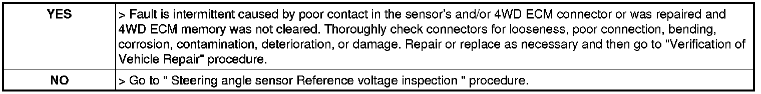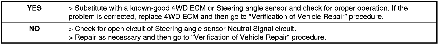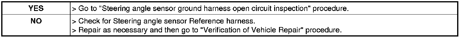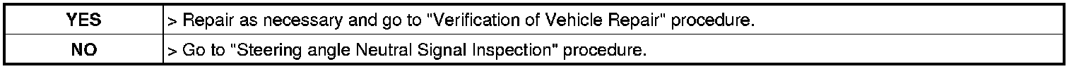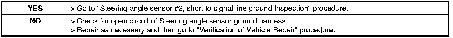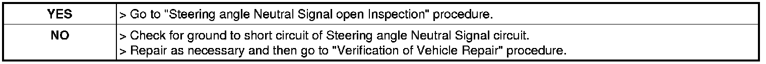 Steering angle Neutral Signal, short to signal line ground Inspection