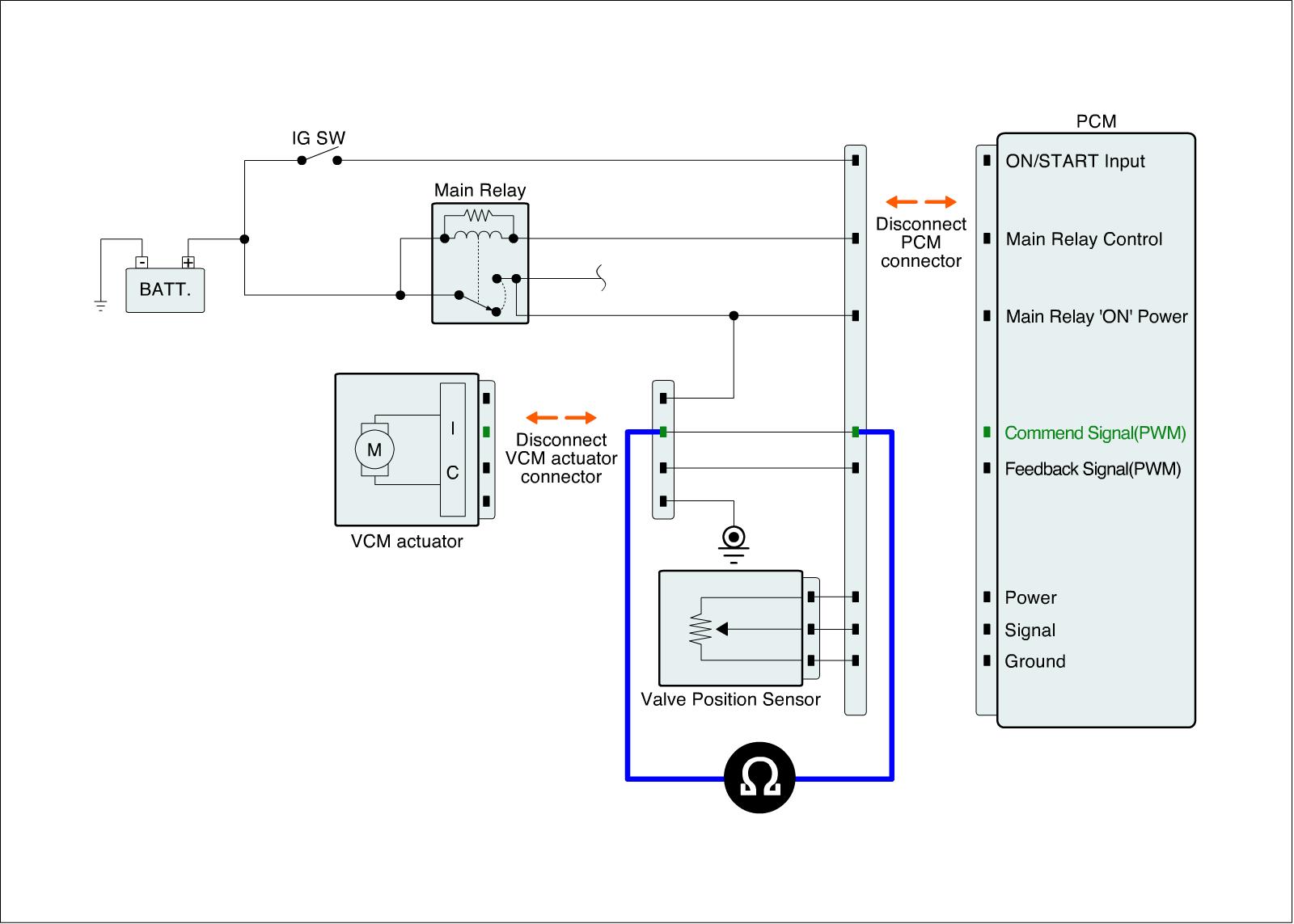 2. Measure resistance between VCMA commend signal terminal of VCMA harness connector and VCMA commend signal terminal of ECM harness connector.