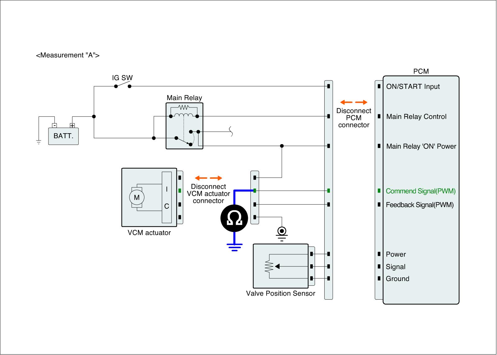 4. Measure resistance between VCMA feedback signal and VCMA ground terminals of VCMA harness connector. (Measurement "B")