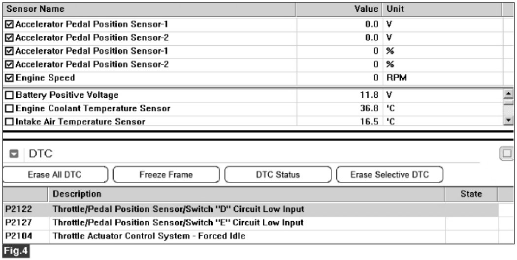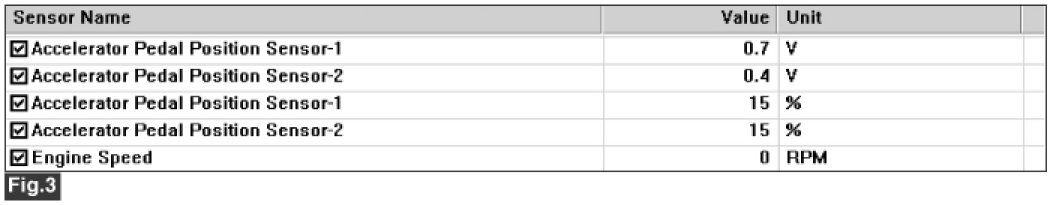 Fig.4) Abnormal data of APS 1 & APS 2 when APS 1 & APS 2 circuit open