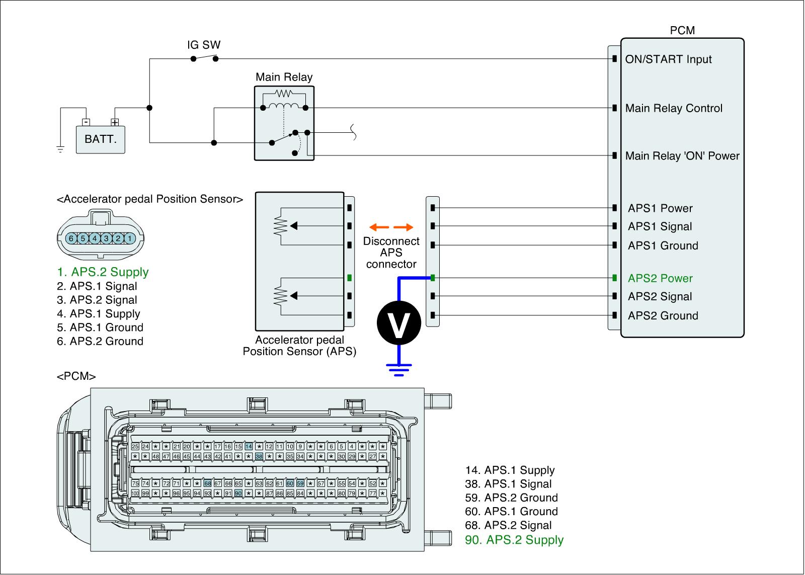 3. Measure voltage between APS 2 power terminal of APS harness connector and chassis ground.