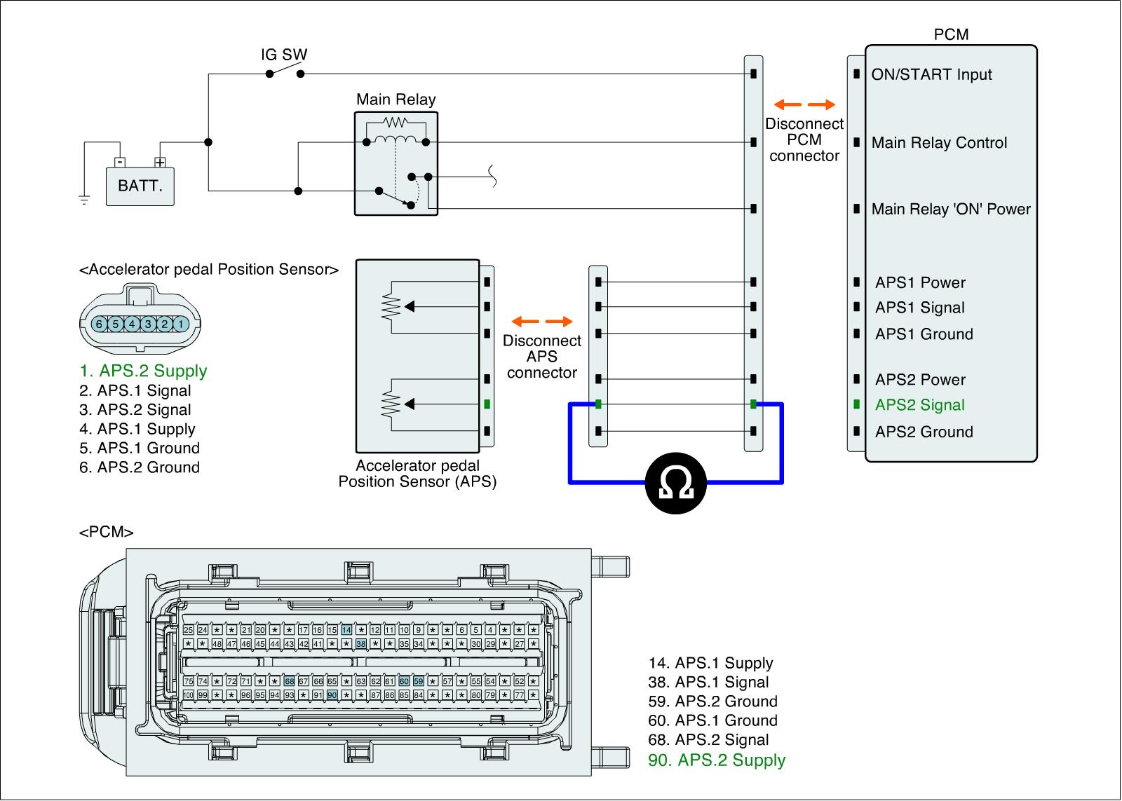 1. IG "OFF" and disconnect APS connector and ECM connector.