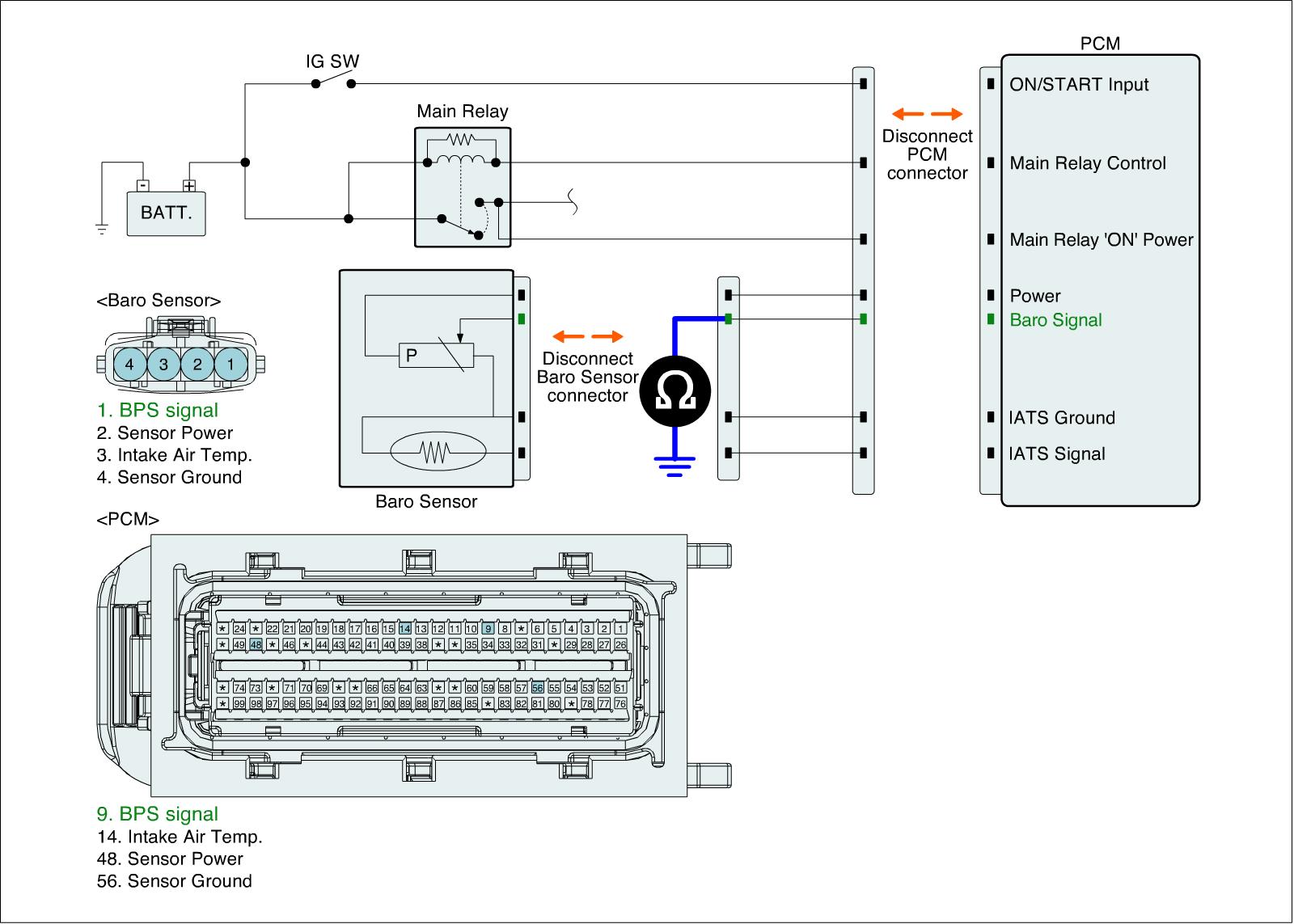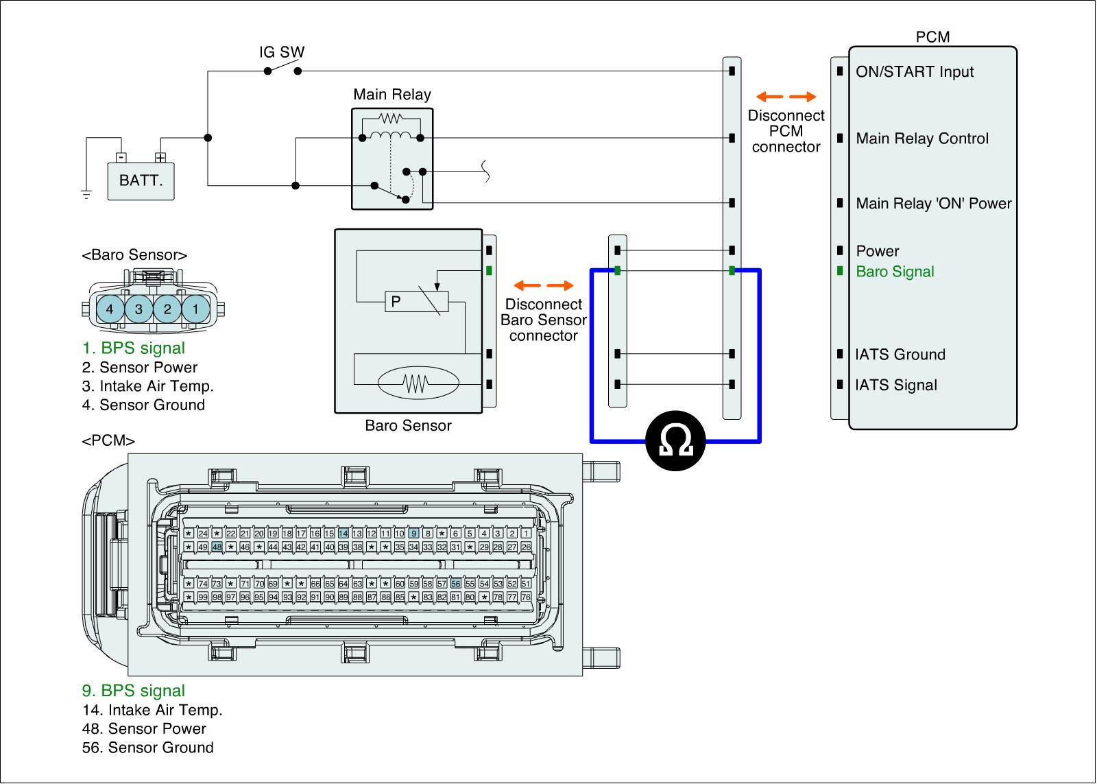 1. IG "OFF" and disconnect BPS and ECM connector.