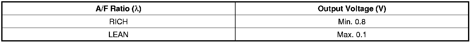 After warming-up, if accelerator pedal is released suddenly around 4000 rpm, the HO2S signal reading will be lower than 200 mV resulting from Fuel cut-off for the moment. Conversely, if suddenly accelerator pedal is depressed, HO2S signal reading will be around 0.6 V ~1.0 V. At idle, Normally HO2S signal will switch from lean to rich with 3 Hz. And as racing, Its frequency rises.