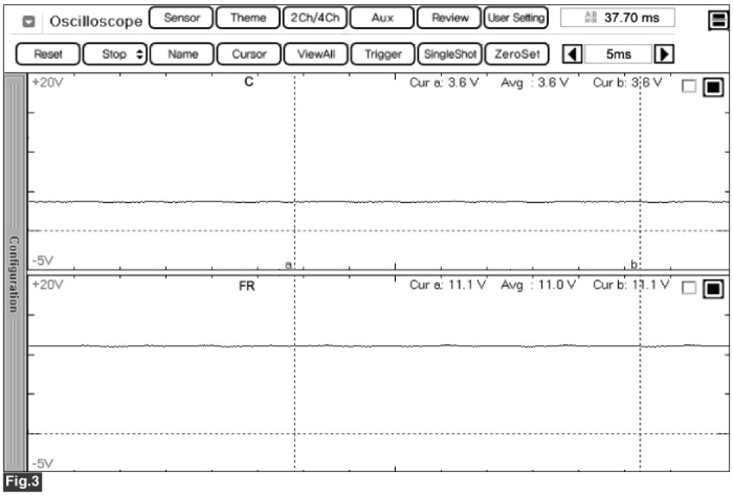 Fig.2) Normal waveforms of COM, FR terminal of alternator under high electronic load condition