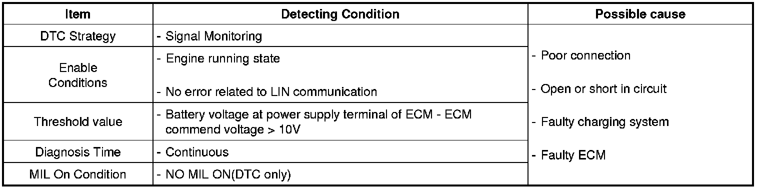ECM sets this code when there is difference between battery voltage at power supply terminal of ECM and ECM commend voltage.