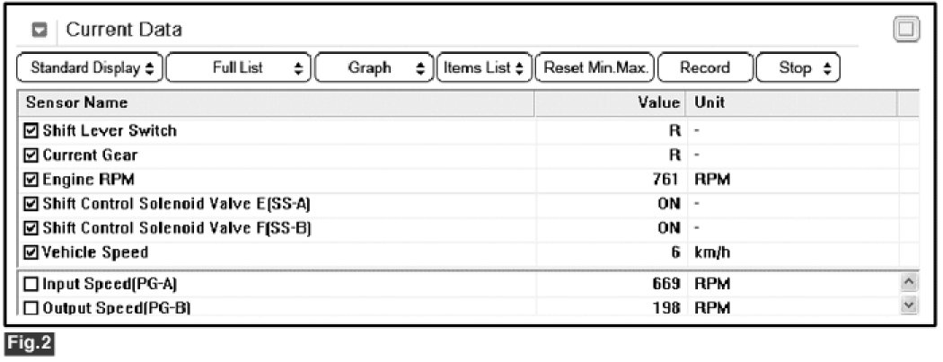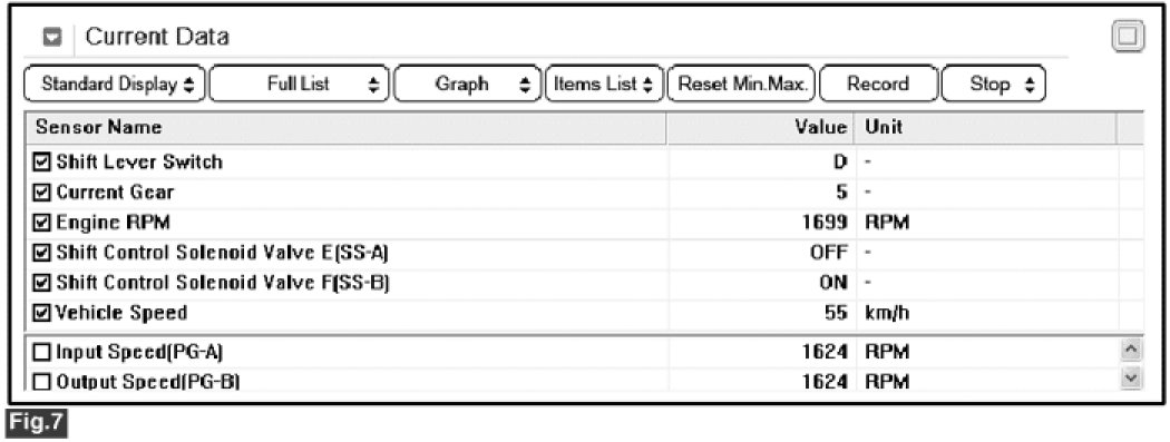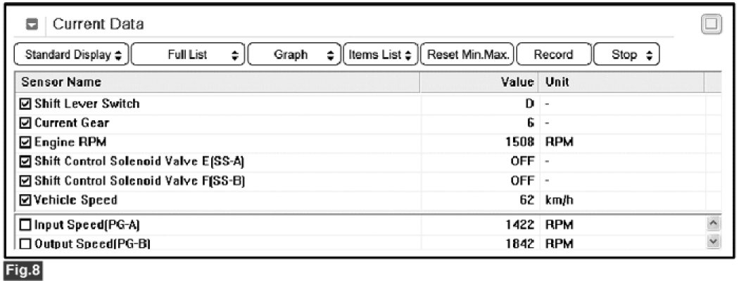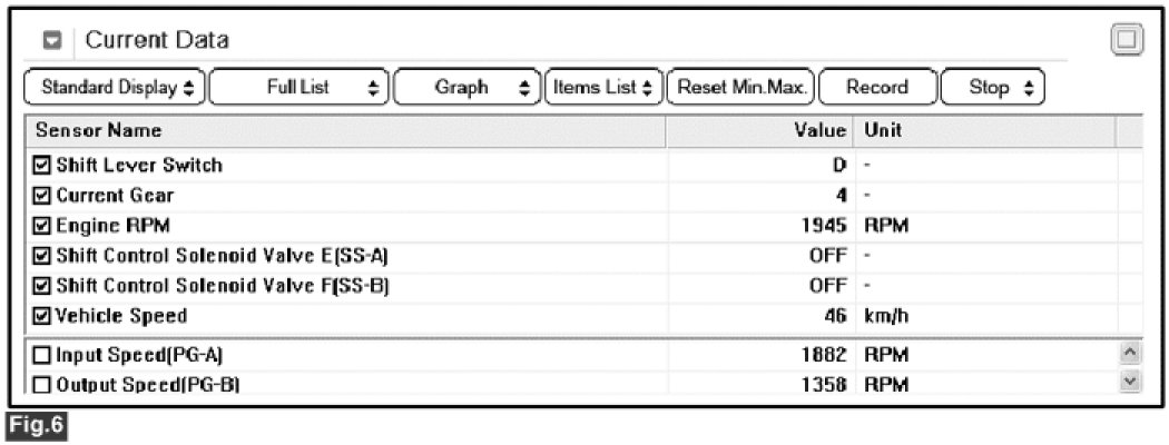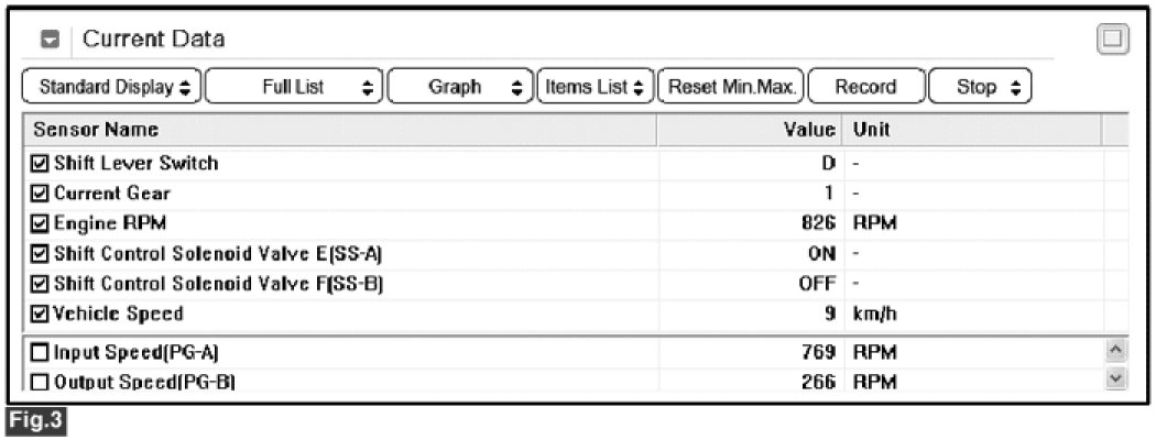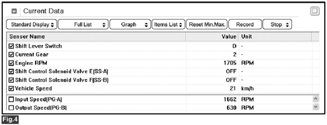 4. Select "Current Data" mode and monitor "Shift Control Solenoid Valve (SS-B)" parameter current value.