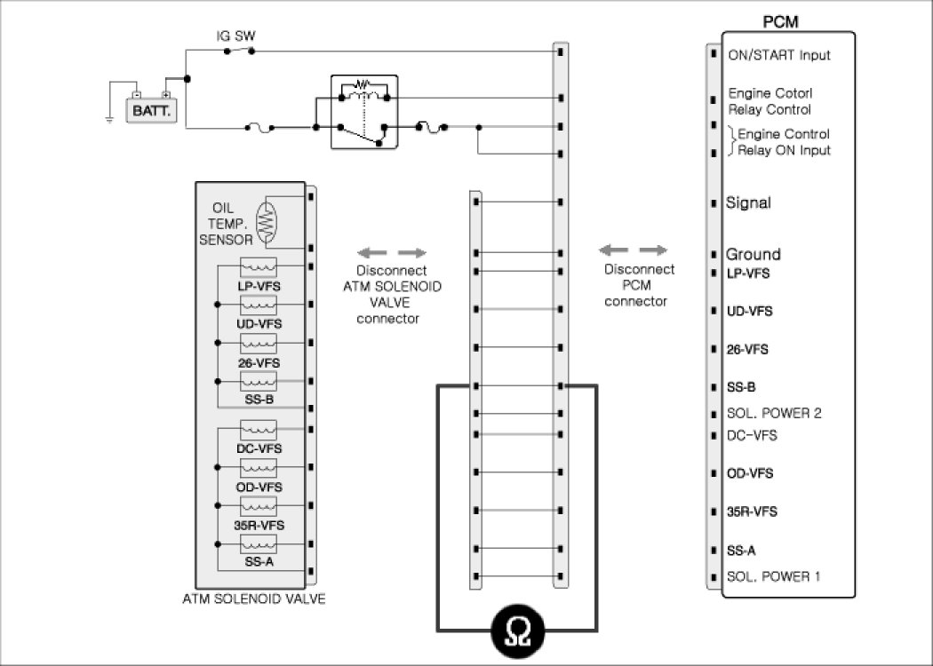 2. Disconnected "ATM solenoid valve connector and PCM/TCM connector.