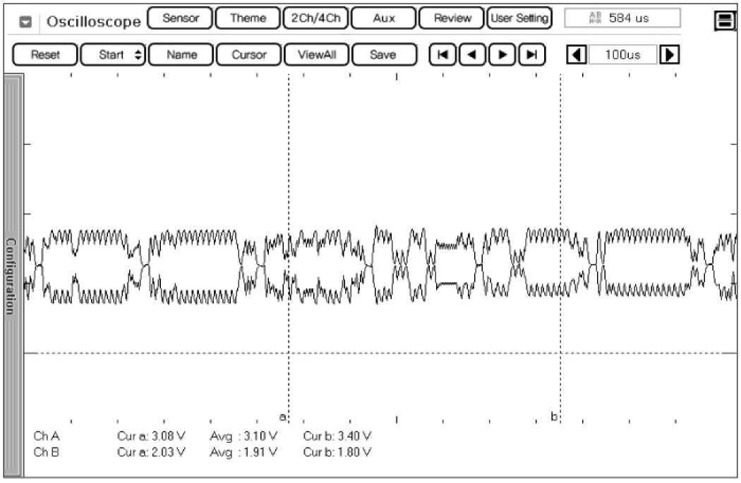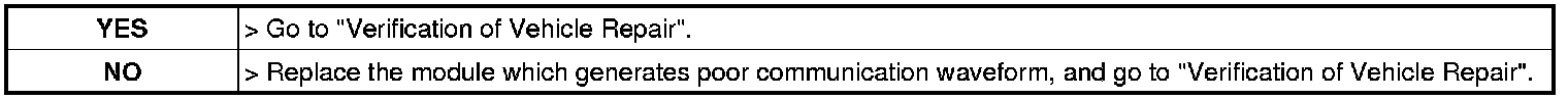 ** Different from "Signal Waveform & Data", if 1) both CAN HIGH and LOW signal are fixed at 2.5 V or 2) HIGH and LOW signal are fixed at 3.5 V and 1.5 V, respectively, it is due to communication error between modules.