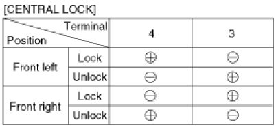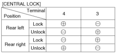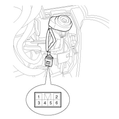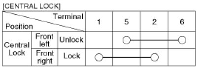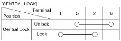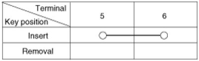 4. Check for continuity between the terminals in each switch position when inserting the key into the door according to the table.