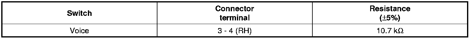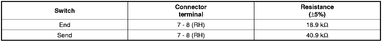 1. Check the hands free remote control switch for resistance between No.7 and No.8 terminals in each switch position.