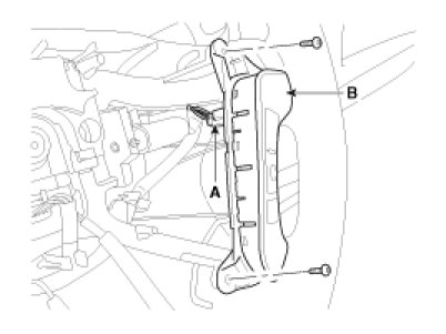 3. Remove the hands free remote control switch (B) after removing the steering wheel remote control switch connector (A) and 2 screws.