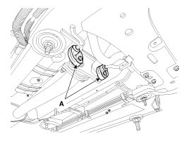 10. Loosen the front roll stopper mounting bolt (A,B).