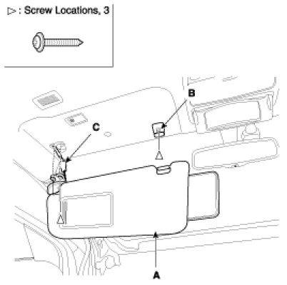 1. Remove the sunvisor (A) and holder (B) from each side.
