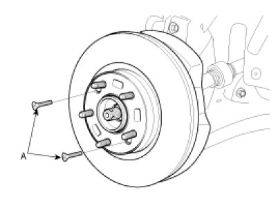 3. Remove the front brake disc by loosening the screws (A).