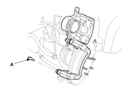 1. Loosen the guide rod bolt (A) and pivot the caliper up out of the way.