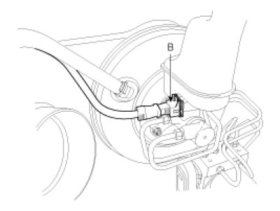 2. Disconnect the brake fluid level switch connector(B) from the reservoir.