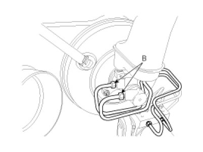 3. Disconnect the brake tube from the master cylinder by loosening the tube flare nut (B).