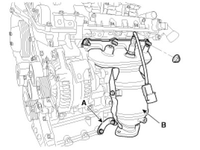 Remove the manifold stays (A), and then remove the exhaust manifolds (B).
