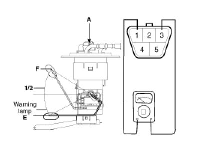 - ON and OFF by gauge indication angle which is driven by MICOM after receiving the sender resistance of left fuel