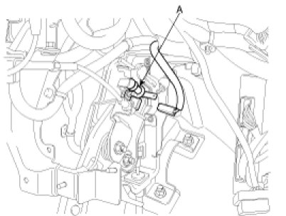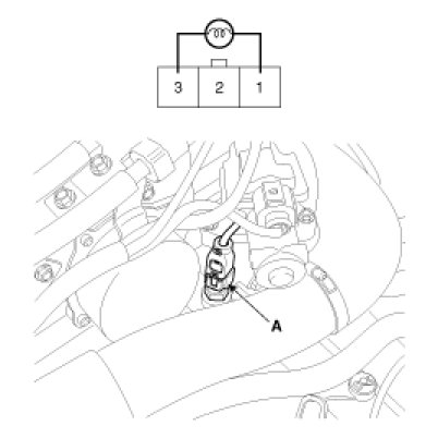 1. Disconnect the wiring connector (A) from the engine coolant temperature sender in the engine compartment.