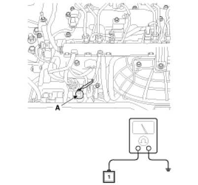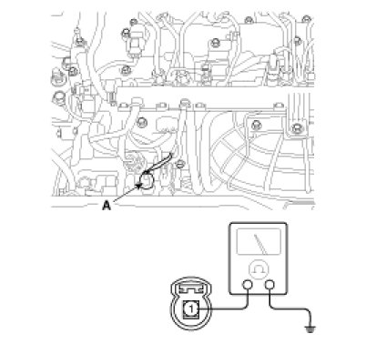 2. Check that there is no continuity between the terminal (A) and ground with the engine running.