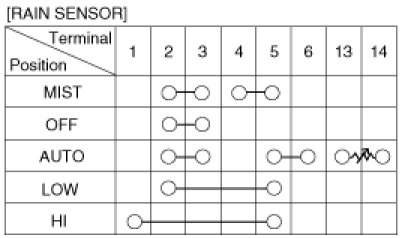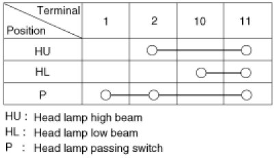 1. With the multi function switch in each position, make sure that continuity exists between the terminals below.