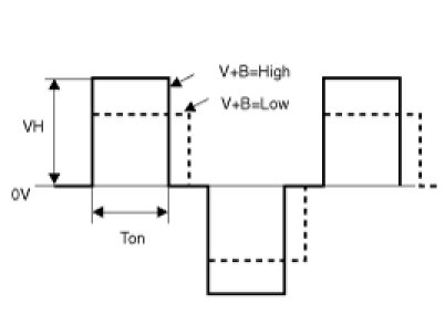 VH, peak voltage of output changes according to input battery voltage.
