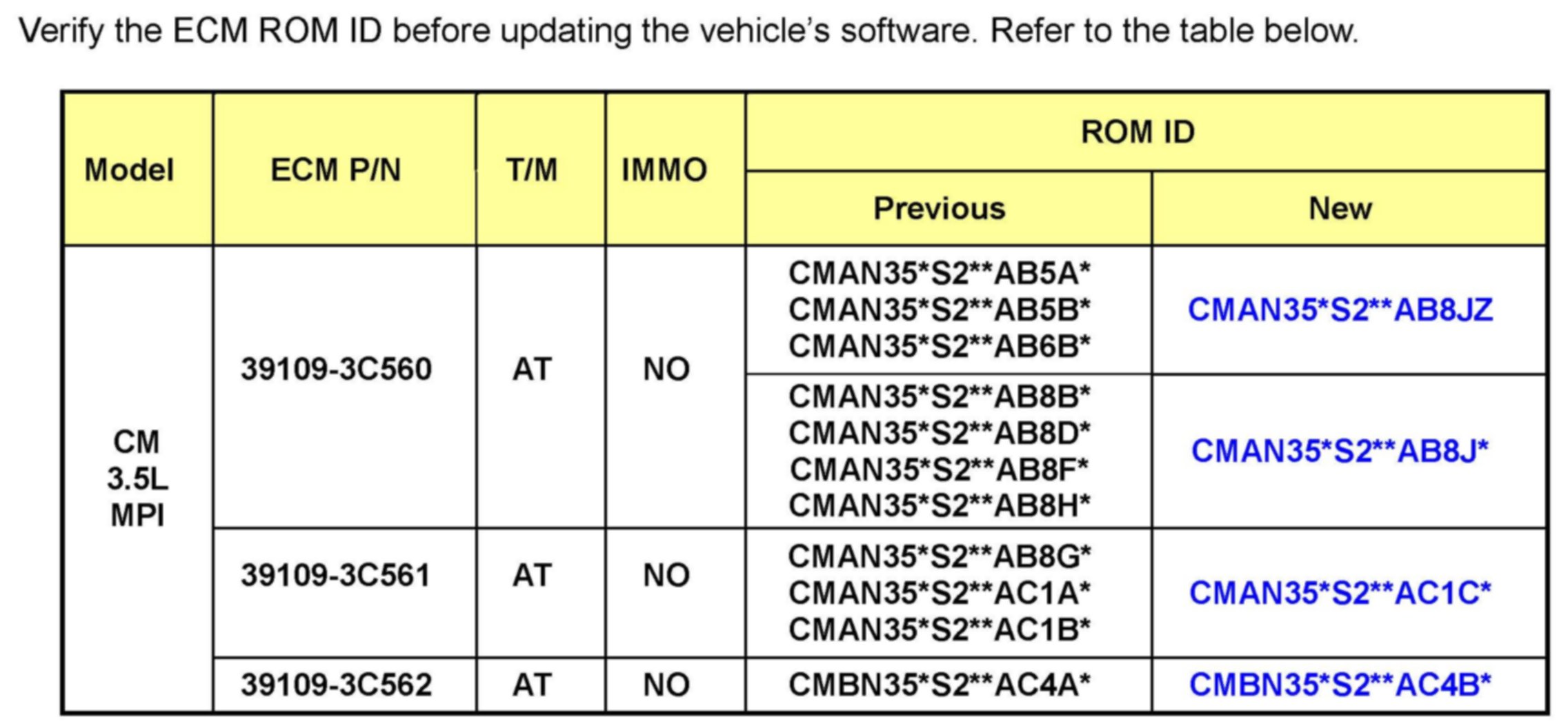 Be sure to perform steps 10-12 ECM reset and ETC Initialization (10 secs Ign OFF/10 secs Ign ON/10 secs Ign OFF) after ECM Update.