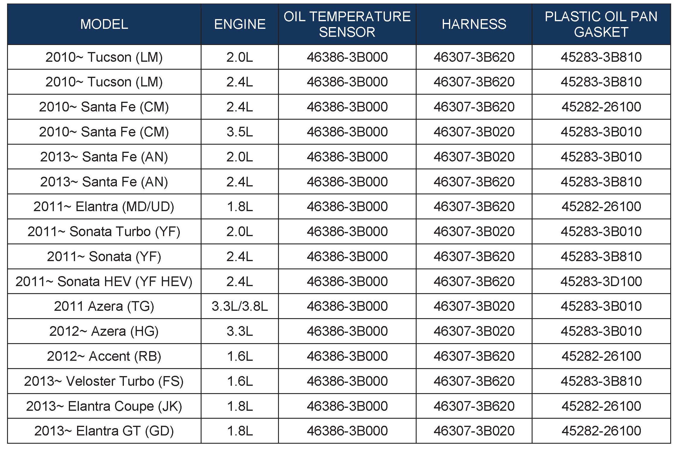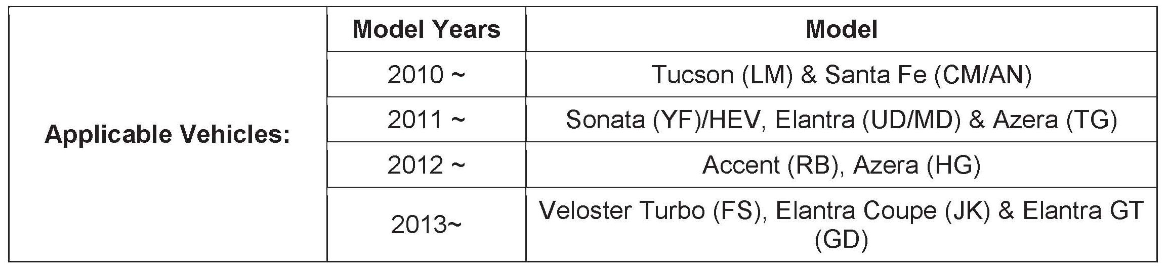 (UD/MD/GD/JK), Accent (RB), Azera