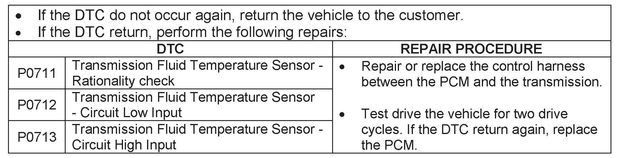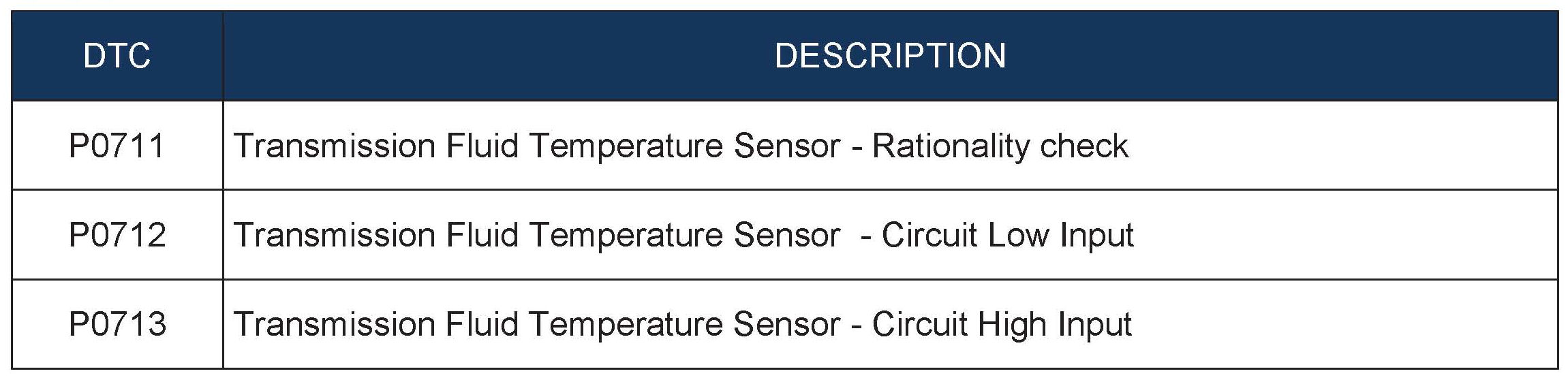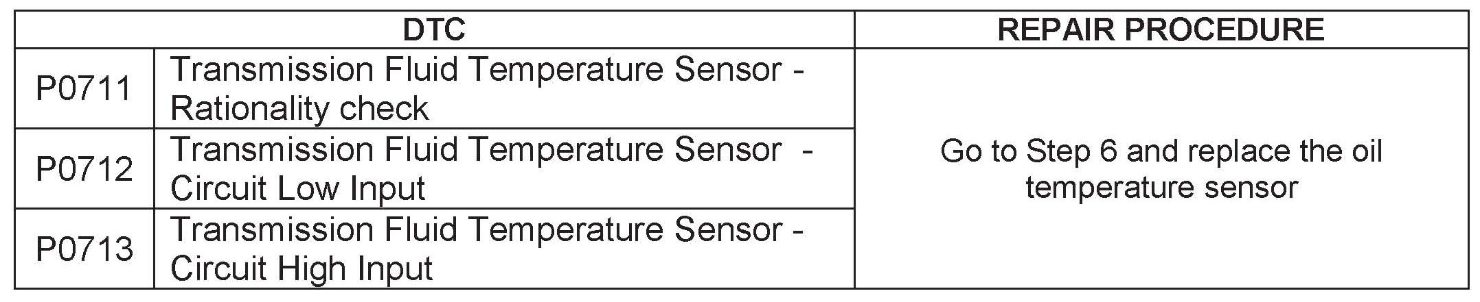 OIL TEMPERATURE SENSOR DTC P0711, P0712 & P0713