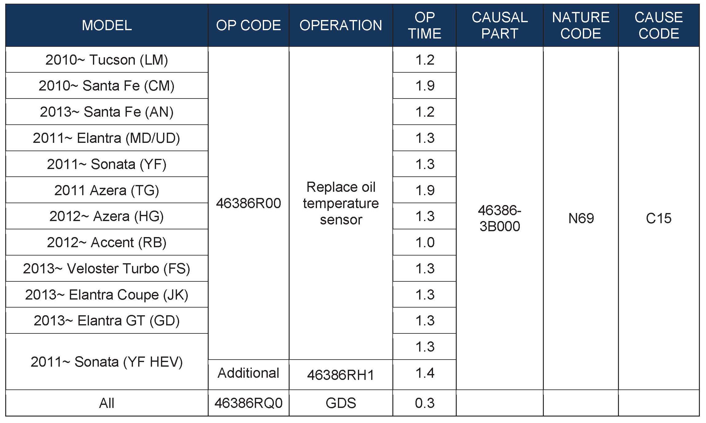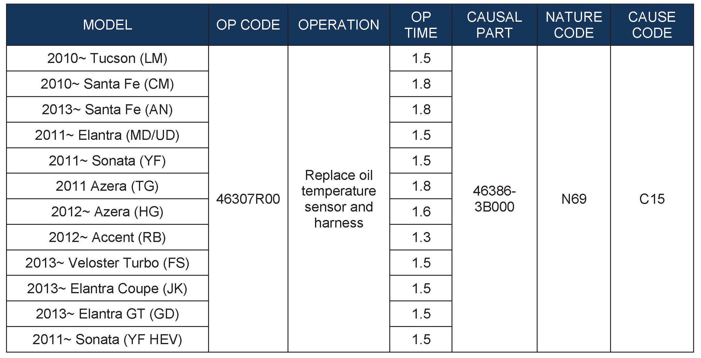 WARRANTY INFORMATION - REPLACE OIL TEMPERATURE SENSOR AND HARNESS: