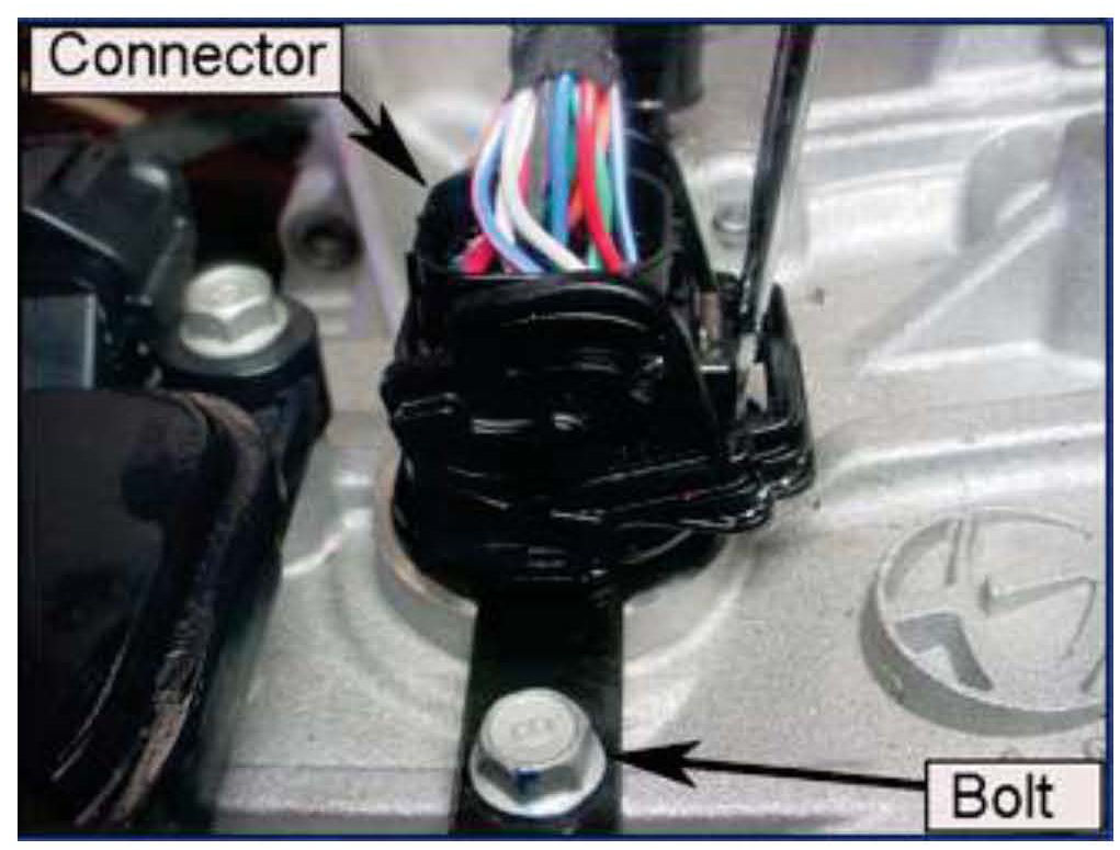 Remove the bolt that secures the connector and push the connector into the transmission.