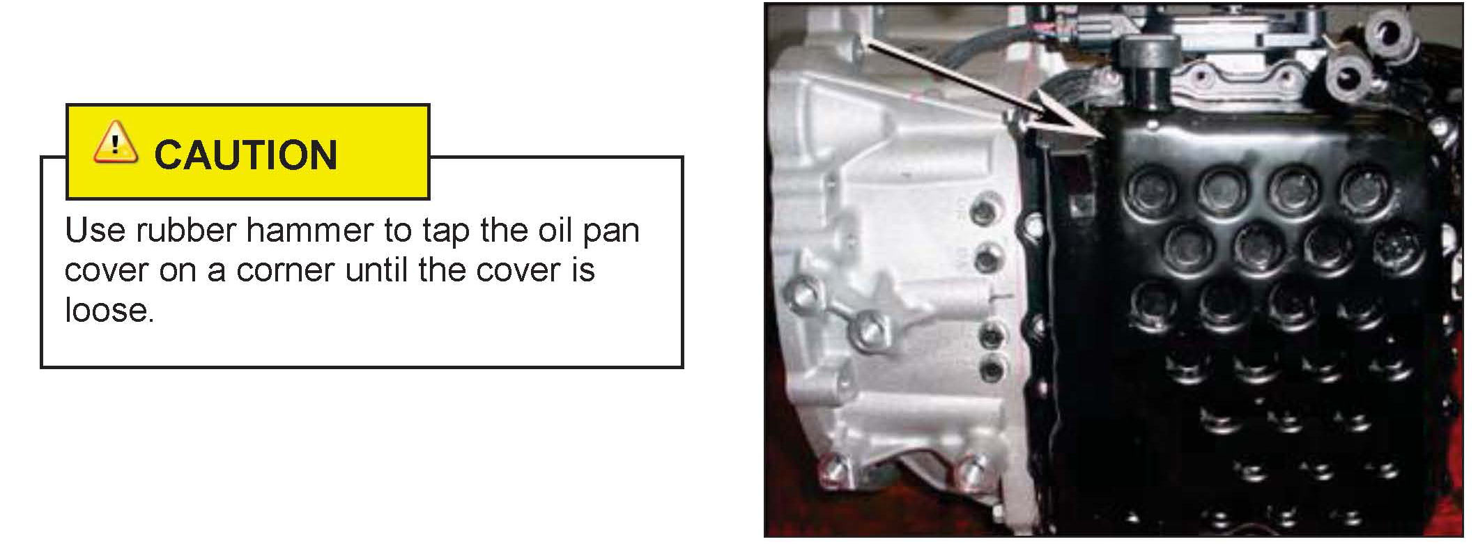 Disconnect the vent hose at the top of the oil pan.