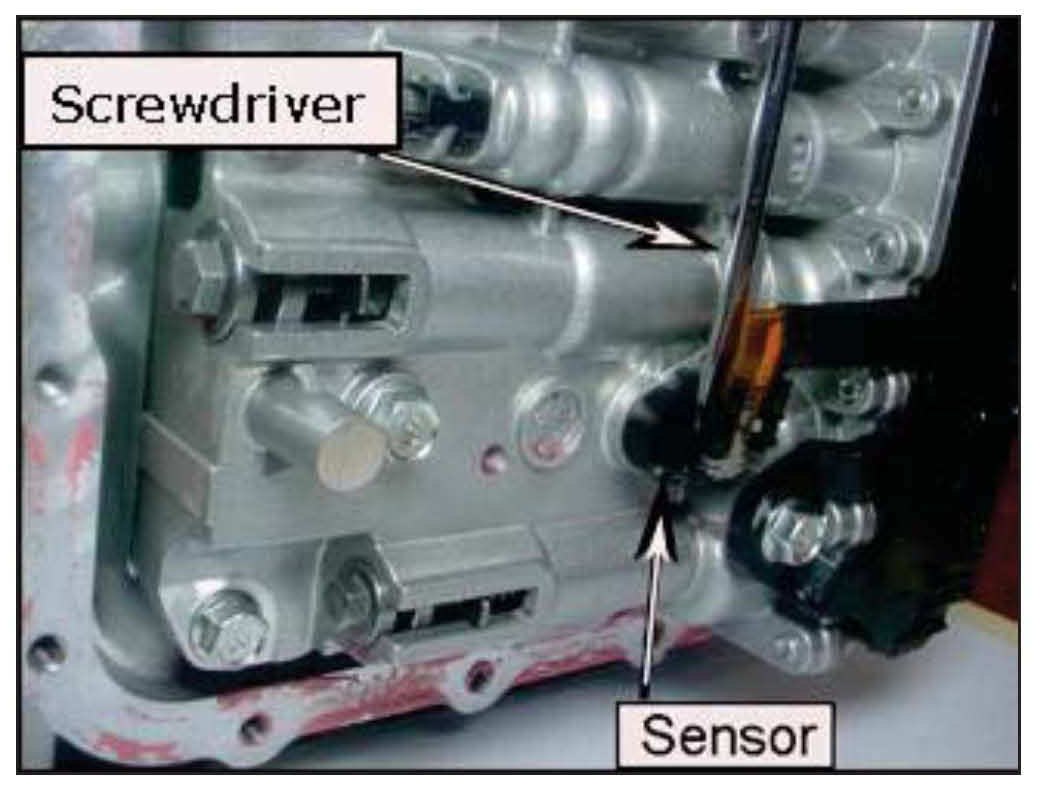 16. Use a screwdriver to depress the locking tab and pull outward on the connector to the input and output speed sensor.
