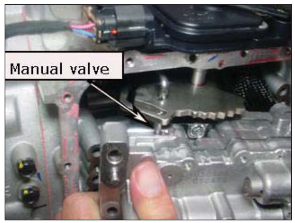 19. Align the manual shaft to the shift lever and install the valve body.