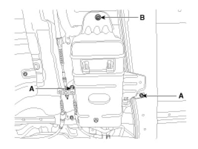 3. Remove the installation bolts (A) and nut (B), and then remove the canister.