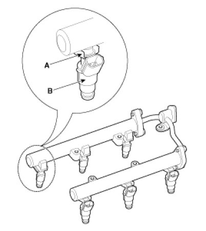7. Remove the fixing clip (A), and then separate the injector (B) from the delivery pipe.