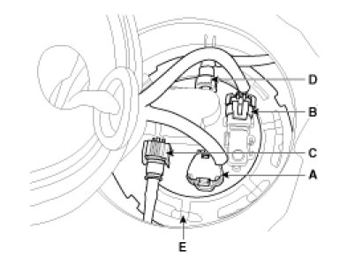 1. Remove the sub fuel sender cover and disconnect the sub fuel sender connector .