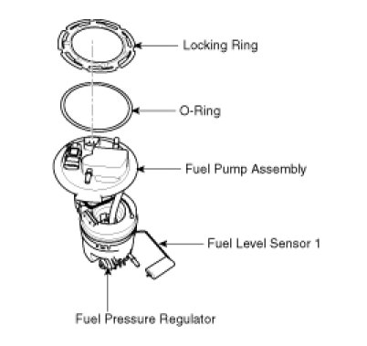 The wiring in between the fuel pump and the sub fuel sender is fastened to the vehicle. So please separate it before removing the fuel pump service cover in accordance with the procedures below.