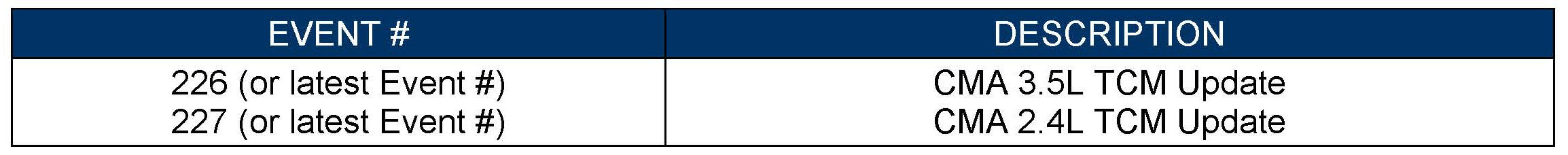Verify the TCM ROM ID before updating the vehicle's software. Refer to the table.