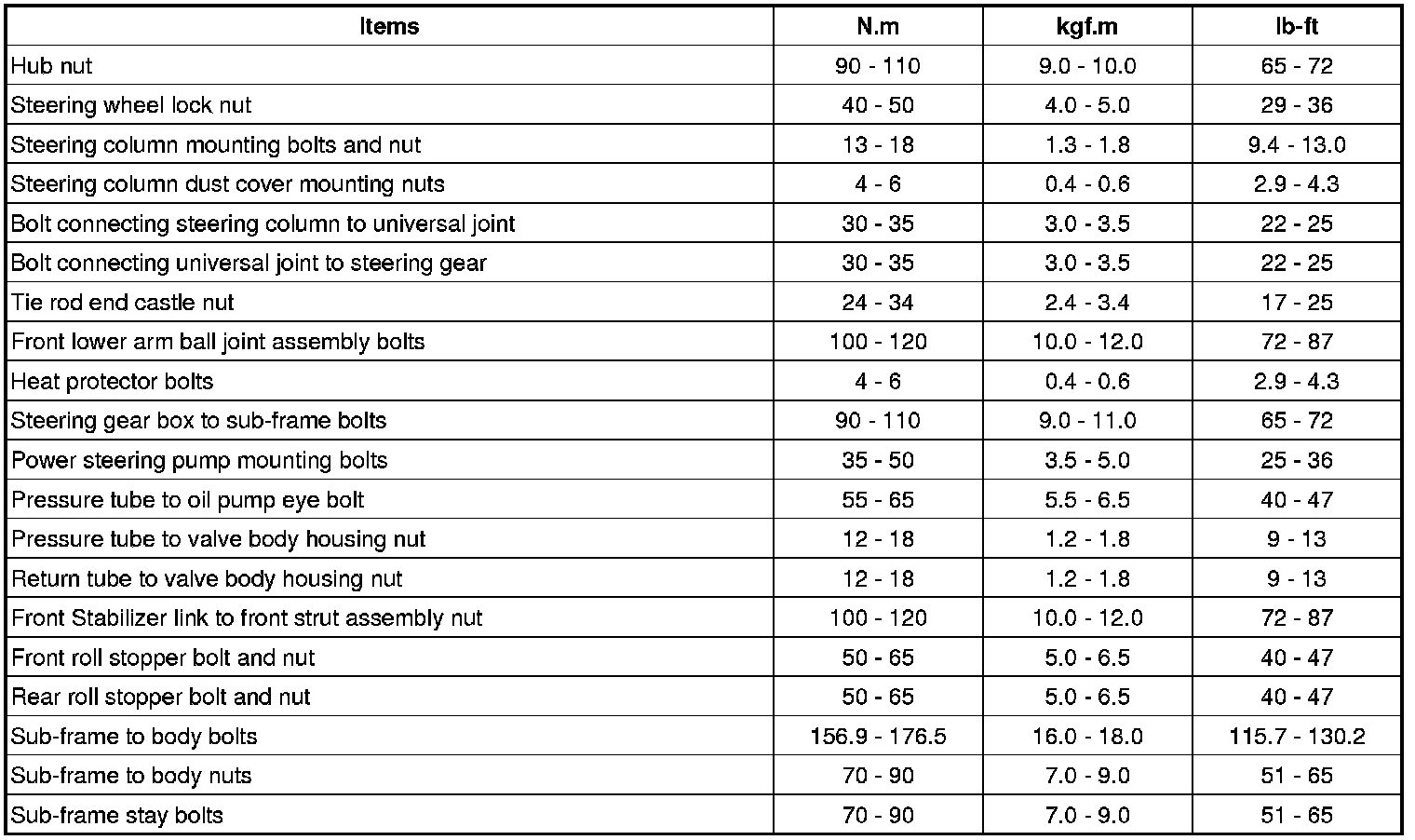 Tightening Torques