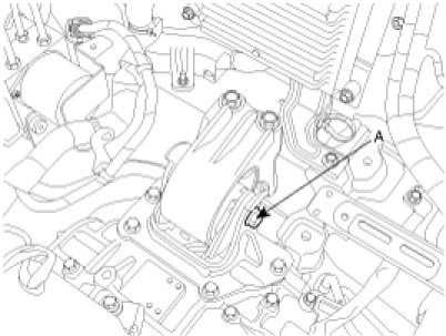 9. Remove the automatic transaxle mounting support bracket bolt (A).