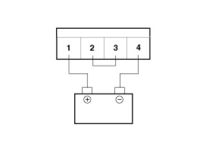 4. Connect the positive (+) lead from the battery to terminal 1 and the negative (-) lead to terminal 4.