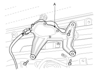 4. Disconnect the rear wiper motor connector then remove the rear wiper motor (B) after removing 3 bolts.