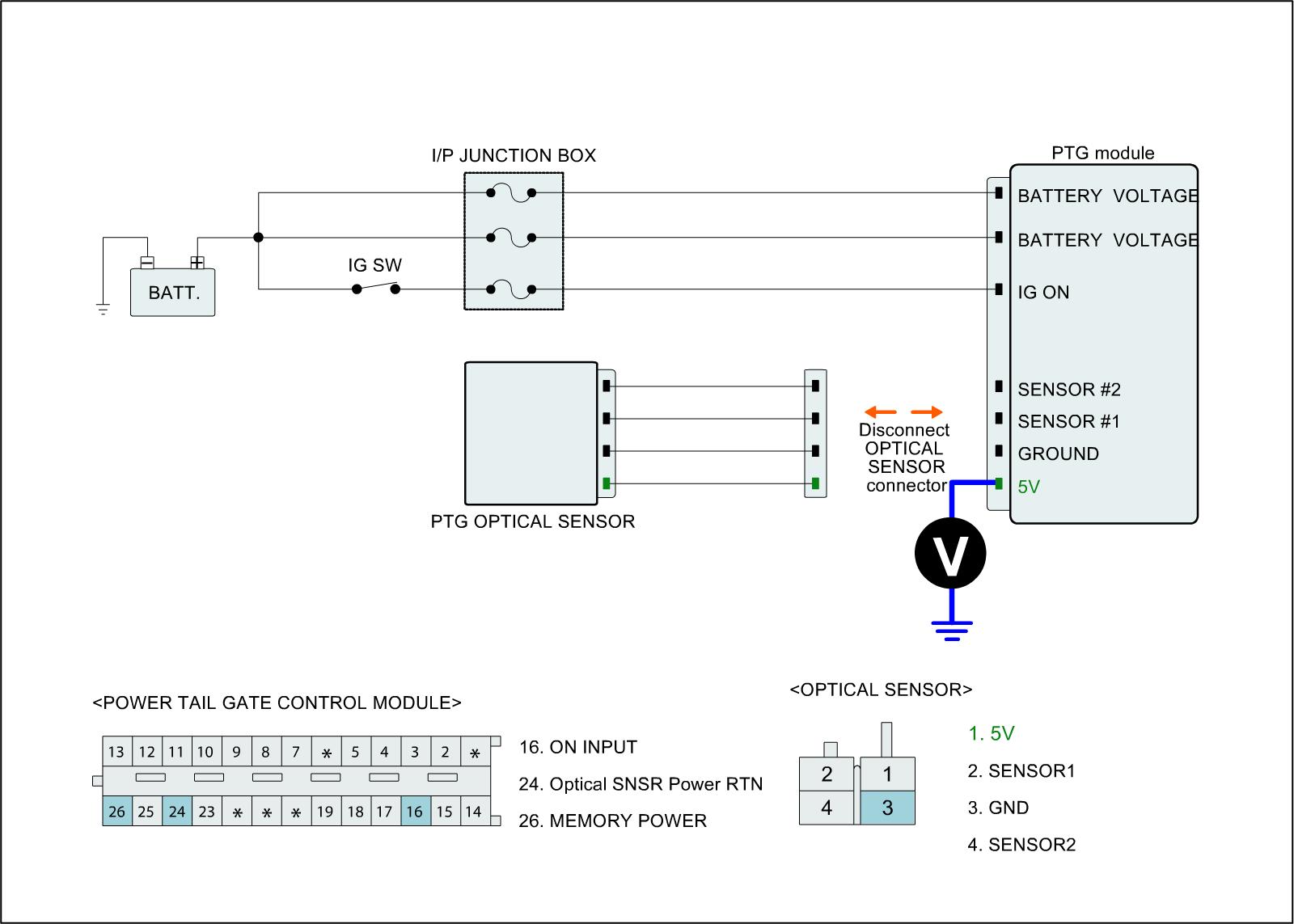 3. Measure voltage between sensing terminal of PTG and chassis ground.