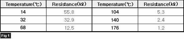 FIG.1) ** Specifications : Resistance value of water temp sensor as a function of temperature.